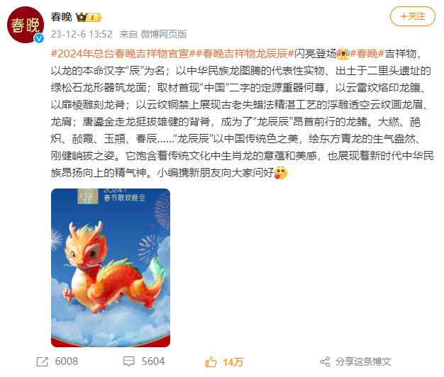 春晚龙年吉祥物“龙辰辰”翻车了?