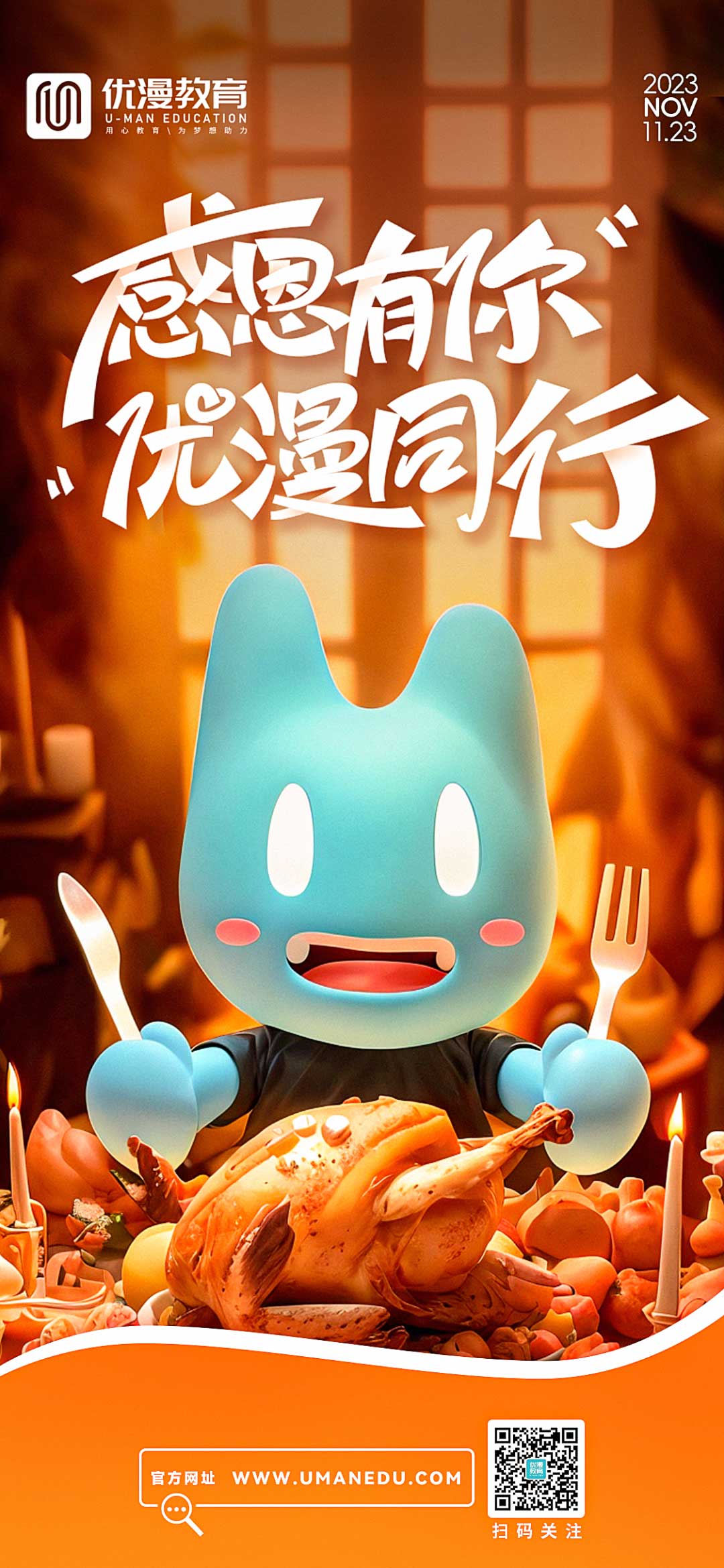 AIGC生成优漫教育U仔建模效果图制作感恩节海报