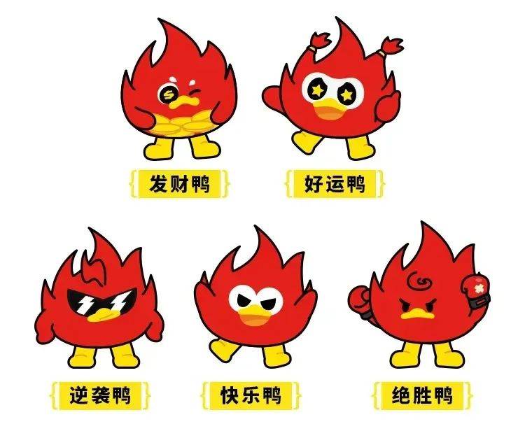小火鸭的设计灵感源于绝味鸭脖的“绝”字和火焰符号,将两者巧妙结合,形成了一只身披红色火焰、造型简约而不失可爱的鸭子形象。其火红的身躯与亮黄色的喙脚形成鲜明对比,视觉冲击力极强,令人过目难忘。