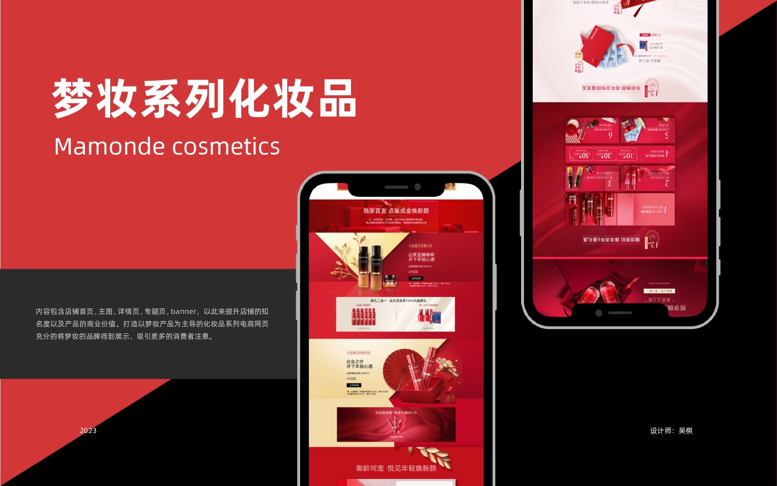 包括品牌标识设计、电商页面设计及用户界面设计,展示从概念草图到最终产品的完整设计流程和专业设计技术,体现对设计细节的关注。