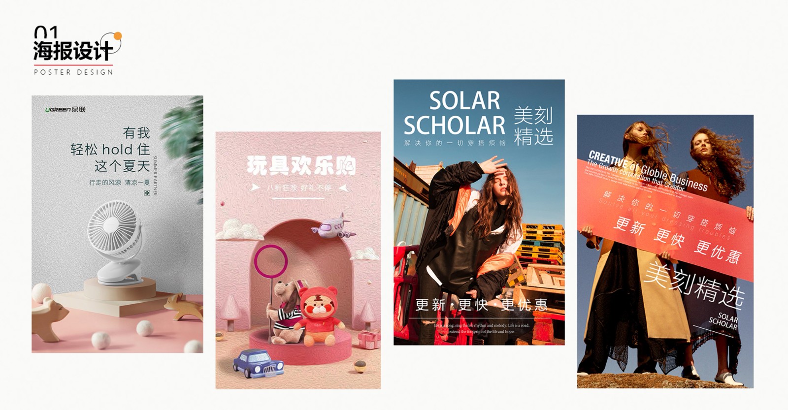 包括品牌视觉系统设计、电商活动页面及用户界面设计,突出设计思维与技术实现的深度融合,展示全面的设计实力和创新能力。