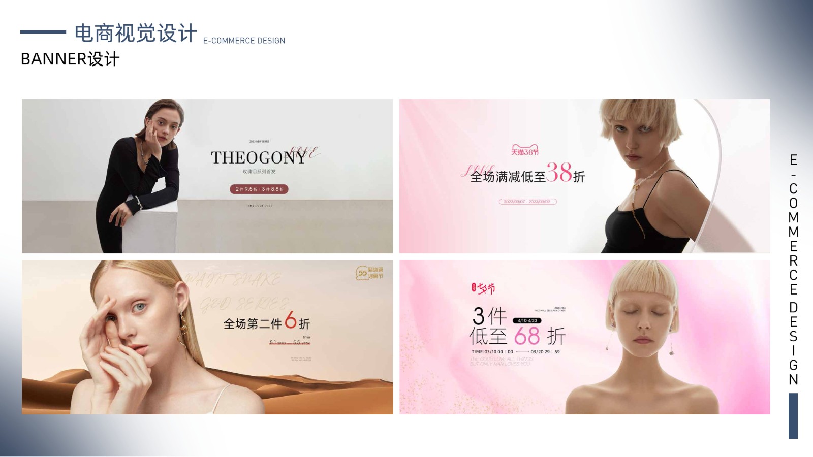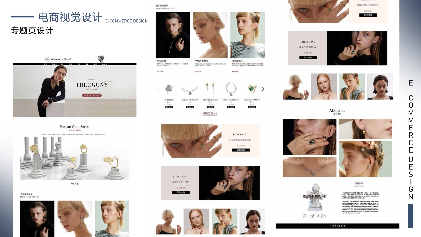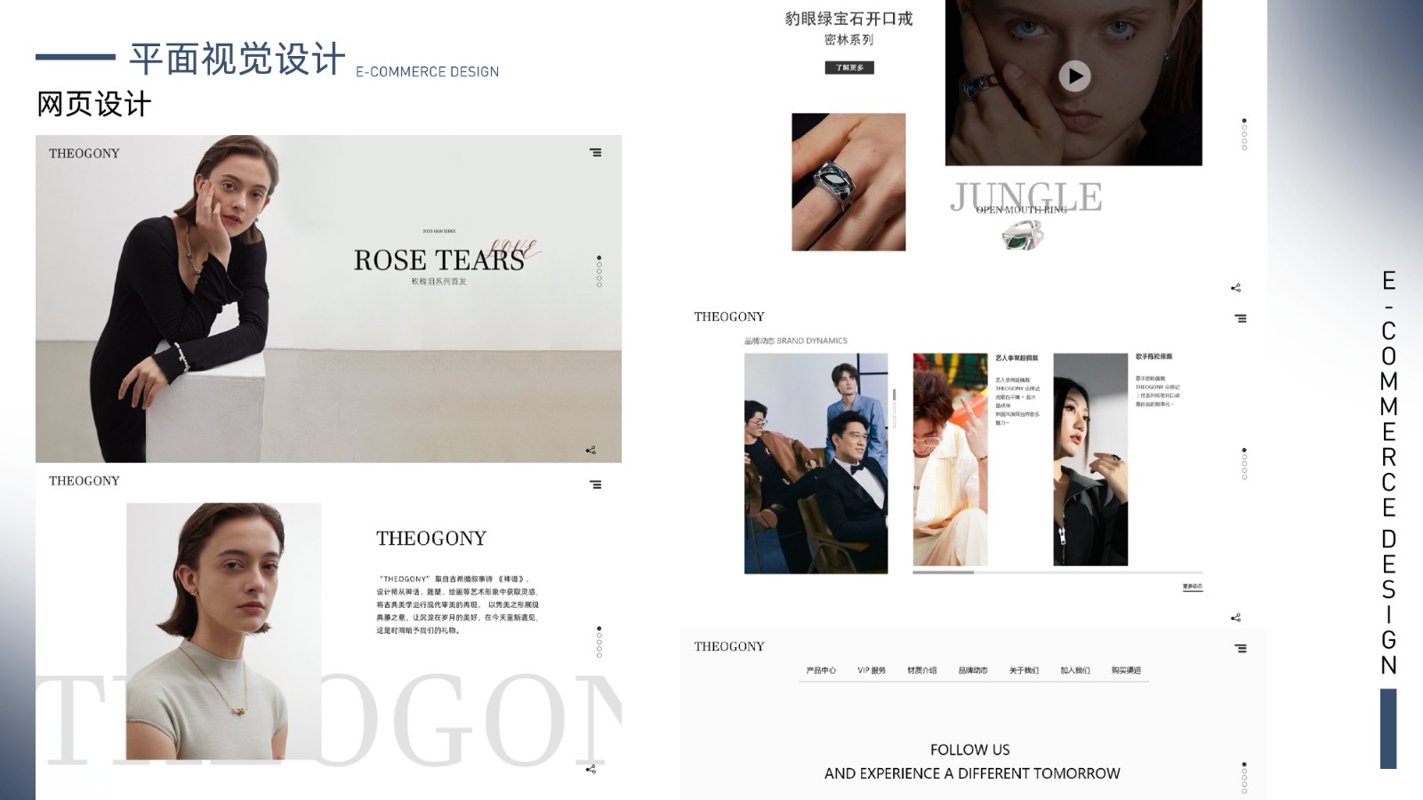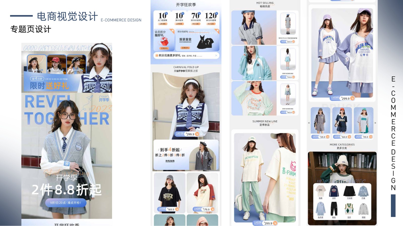 包括品牌视觉系统、产品包装设计、电商广告页面及用户界面设计,体现全面的视觉设计技能和用户体验优化能力,展示丰富的项目经验和设计思维。