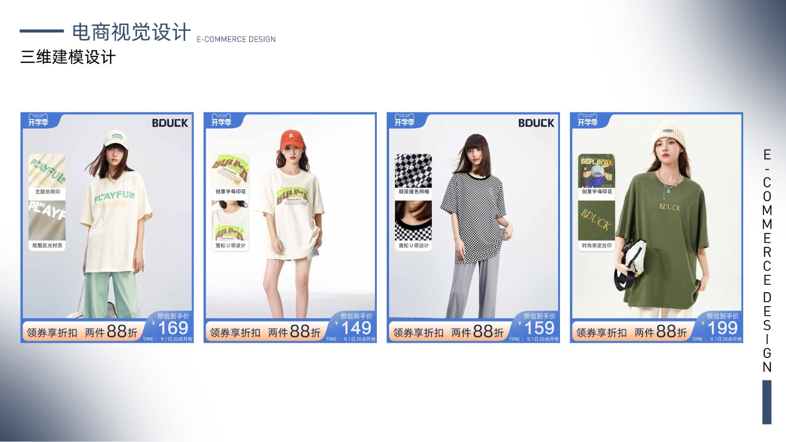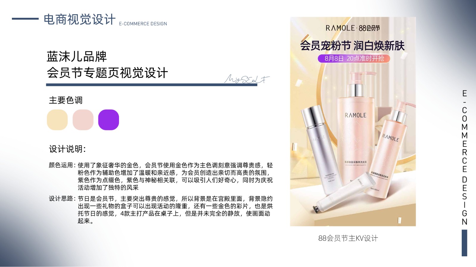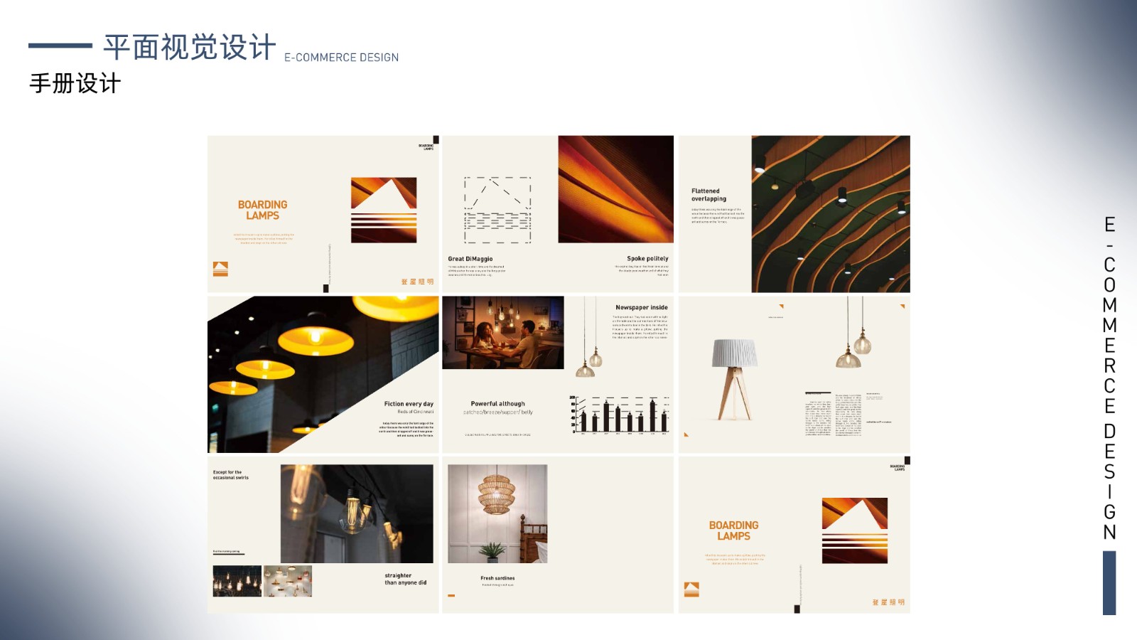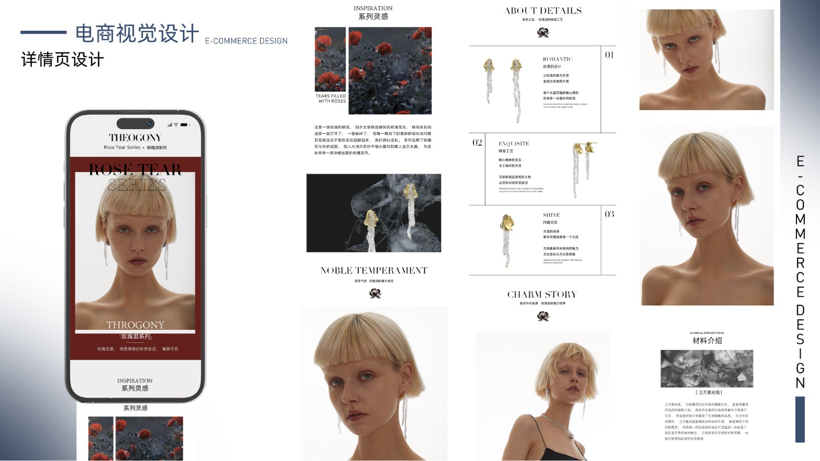包括品牌视觉系统、产品包装设计、电商广告页面及用户界面设计,体现全面的视觉设计技能和用户体验优化能力,展示丰富的项目经验和设计思维。