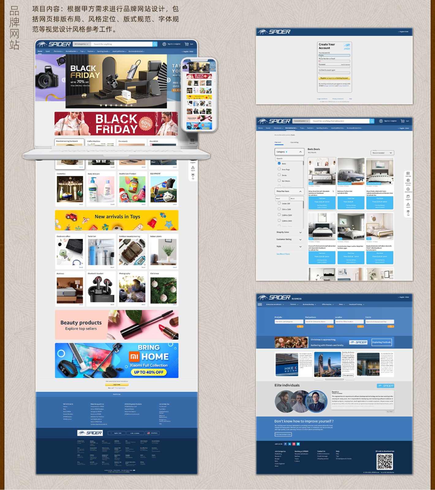 作品集涵盖品牌视觉系统、电商推广页面及用户界面设计,体现全面的视觉设计及用户体验优化能力,展示设计深度和对市场需求的理解。